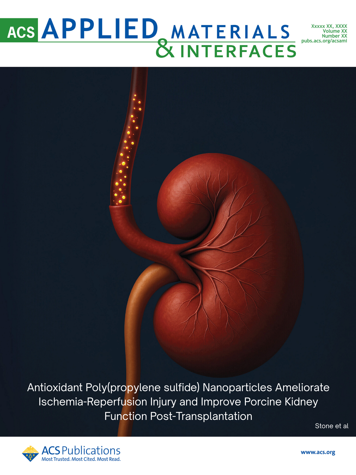 Antioxidant Poly(propylene sulfide) Nanoparticles Ameliorate Ischemia-Reperfusion Injury and Improve Porcine Kidney Function Post-Transplantation. Stone JP, d'Arcy R, Geraghty A, Amin KR, Ghibaudi M, Francini N, Montero-Fernandez A, Dabare D, Ogliastro C, Sganga S, Coradello G, Rosa GD, Bramhall J, Galwey N, Ruseva M, Tirelli N, Fildes JE. ACS Appl Mater Interfaces. 2025 Oct 29;17(43):59067-59081. doi: 10.1021/acsami.5c11562.